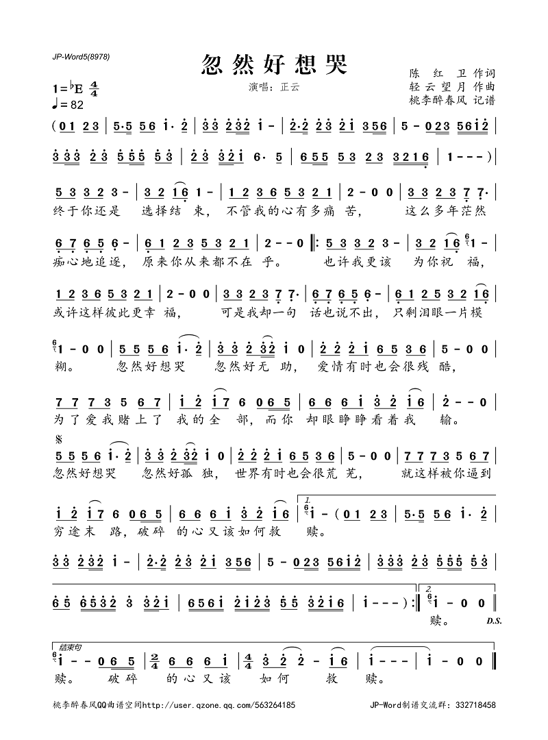 忽然好想哭(简谱)