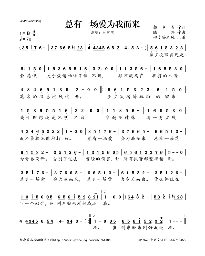 总有一场爱为我而来——孙艺琪(简谱)