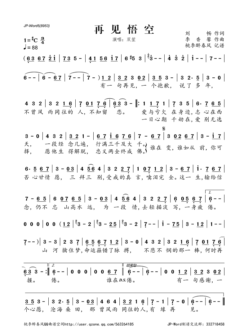 再见悟空——双笙(简谱)