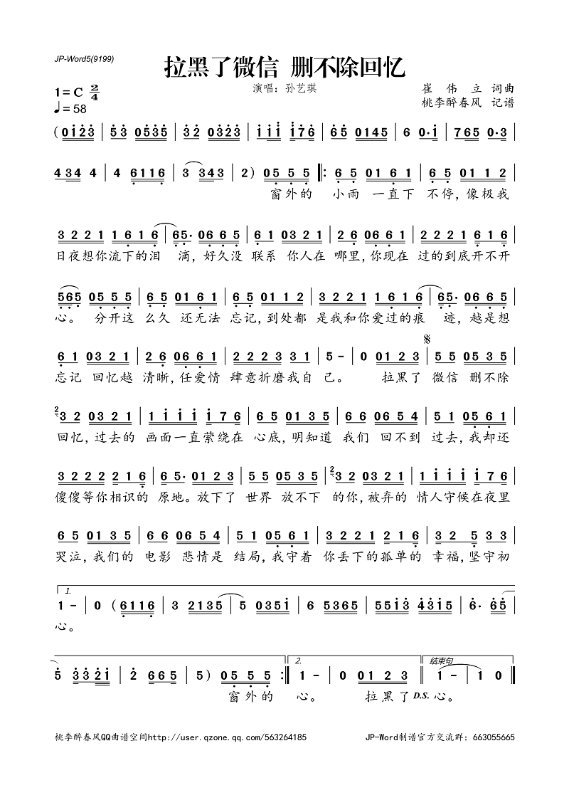 拉黑了微信 删不除回忆(简谱)
