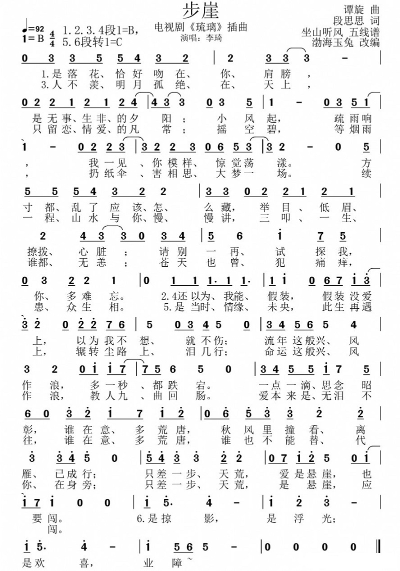 步崖(电视剧《琉璃》插曲)(简谱)