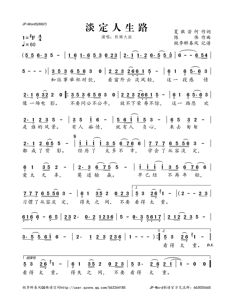 淡定人生路(简谱)